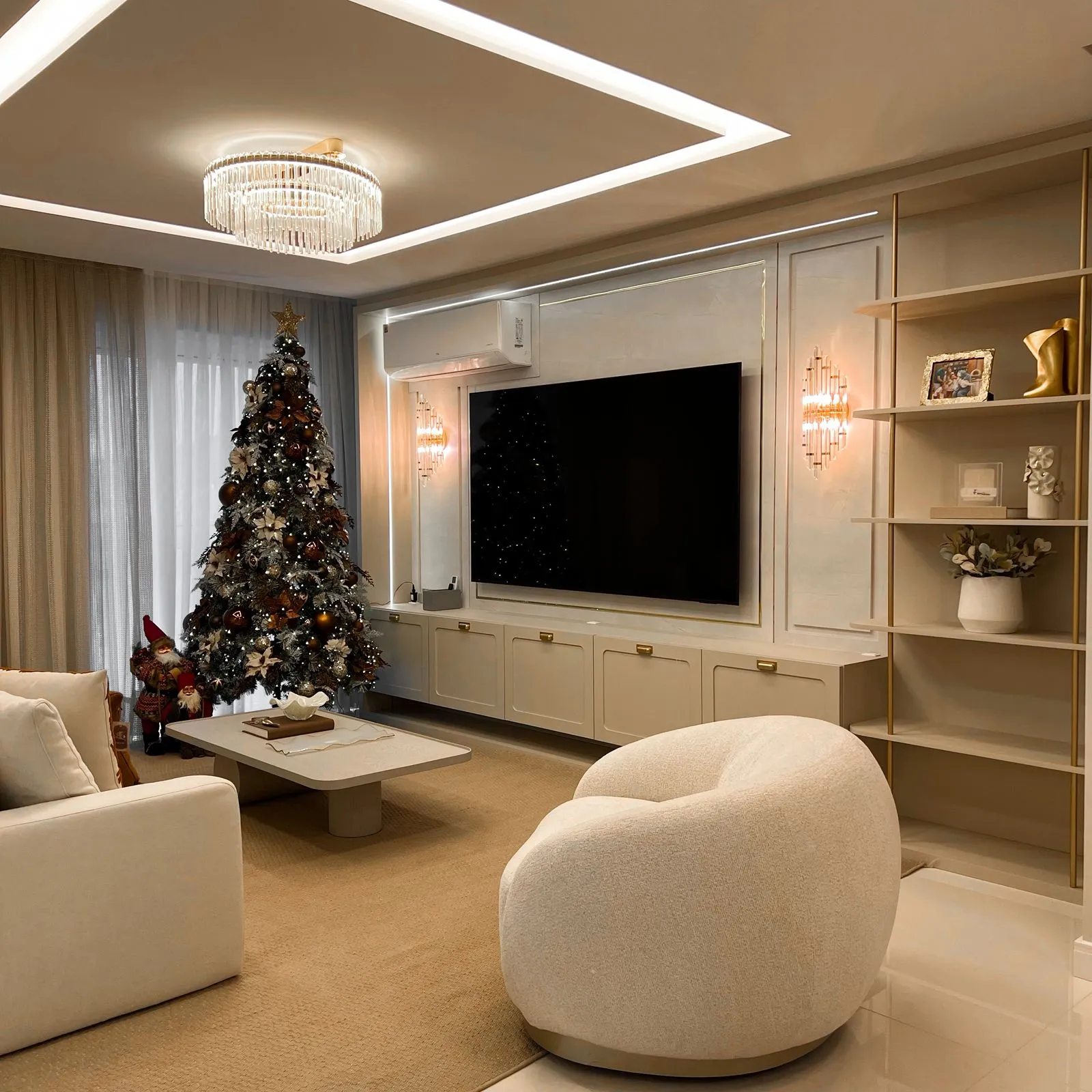 Este projeto residencial, desenvolvido em parceria com a Karina Cruz Interiores, foi pensado para atender à rotina de uma família com dois meninos, unindo conforto, funcionalidade e estética. A Namai Decor assinou a curadoria de papéis de parede, aromas, decorações e mobiliários, trazendo identidade e sensibilidade a cada ambiente. As escolhas de materiais, texturas e elementos sensoriais criam espaços acolhedores e contemporâneos, que refletem o estilo de vida da família com leveza e sofisticação. O resultado é um apartamento que valoriza o bem-estar, a convivência e o prazer de viver o lar.