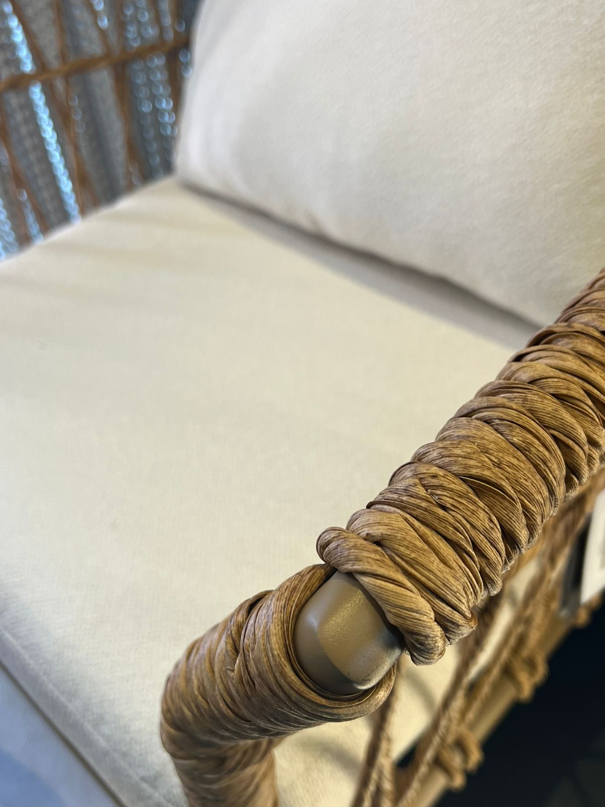 A Poltrona Treviso da Lovato é uma peça que une elegância e resistência, ideal para áreas externas. Sua estrutura em alumínio é envolta por trama de fibra sintética que imita bananeira torcida, conferindo um toque natural e sofisticado. O assento em tecido bouclé sand off-white oferece conforto e estilo, tornando-a perfeita para compor espaços ao ar livre com charme e durabilidade.83 x 61 x 88VALOR:6.100,002 UN