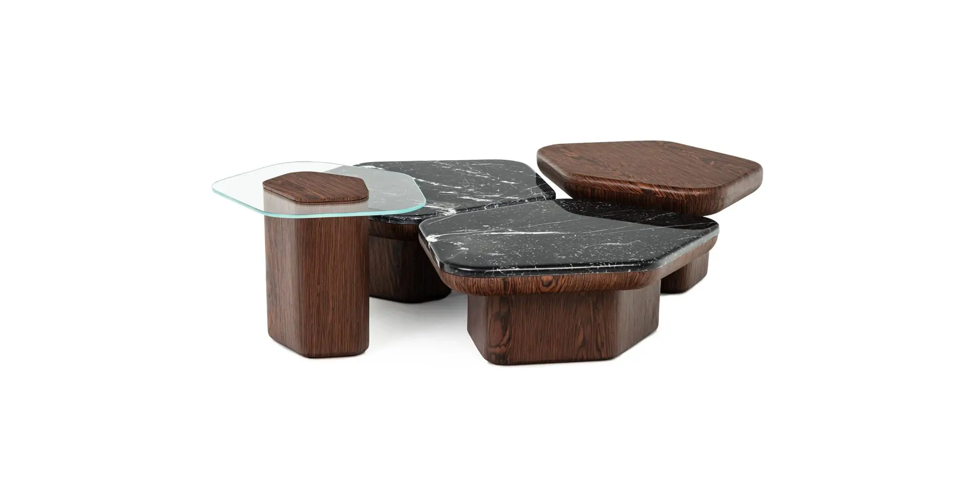 O Romano da Century traduz arte e equilíbrio em um design geométrico sofisticado, onde sua estrutura em aço sustenta superfícies em mármore ou madeira com proporções dinâmicas e variadas. Peça versátil e de presença marcante, valoriza salas e áreas sociais com estilo contemporâneo, funcionalidade e estética refinada.
