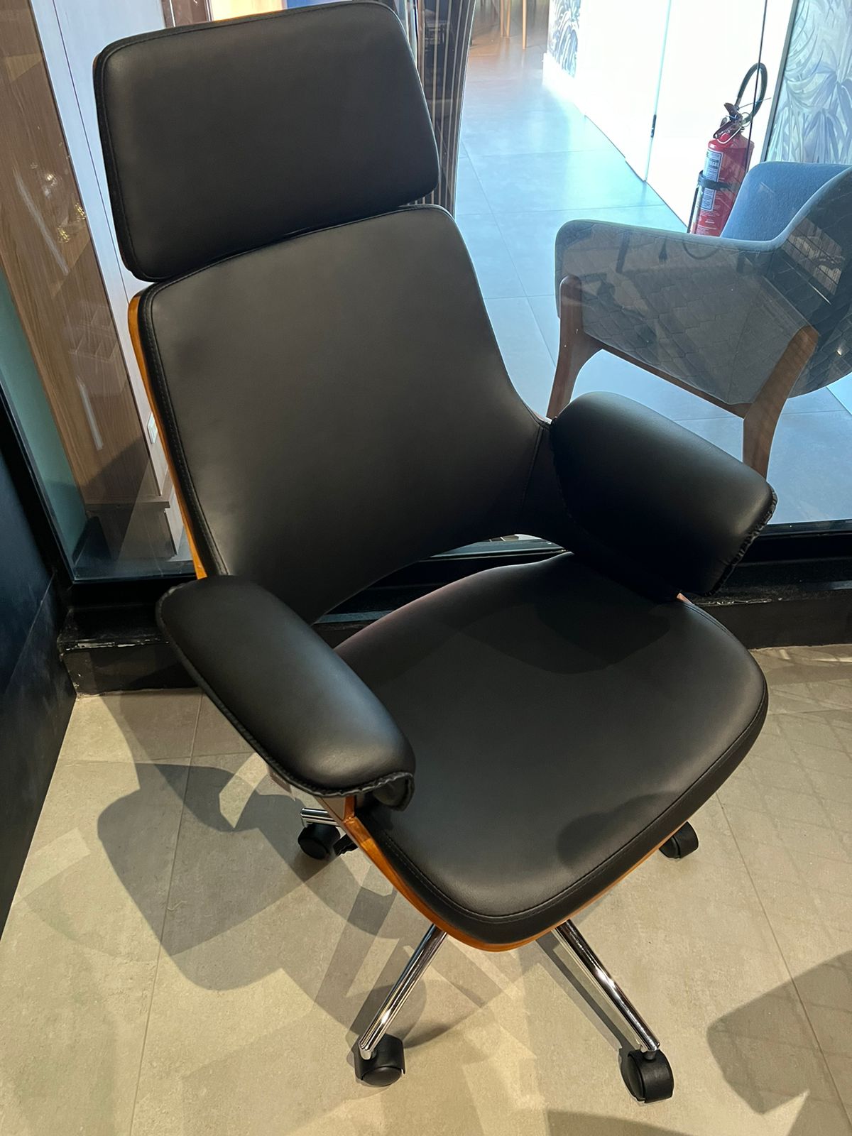 A cadeira Office Coimbra da marca IMD combina conforto e sofisticação. Feita em PU preto, apresenta design ergonômico com base giratória cromada e ajuste de altura, ideal para escritórios modernos que buscam estilo e funcionalidade. Uma peça prática e elegante para elevar o ambiente de trabalhoA 110 - 120 x ASS 46 - 56 x L 66 x C 60 x P 453 UN
