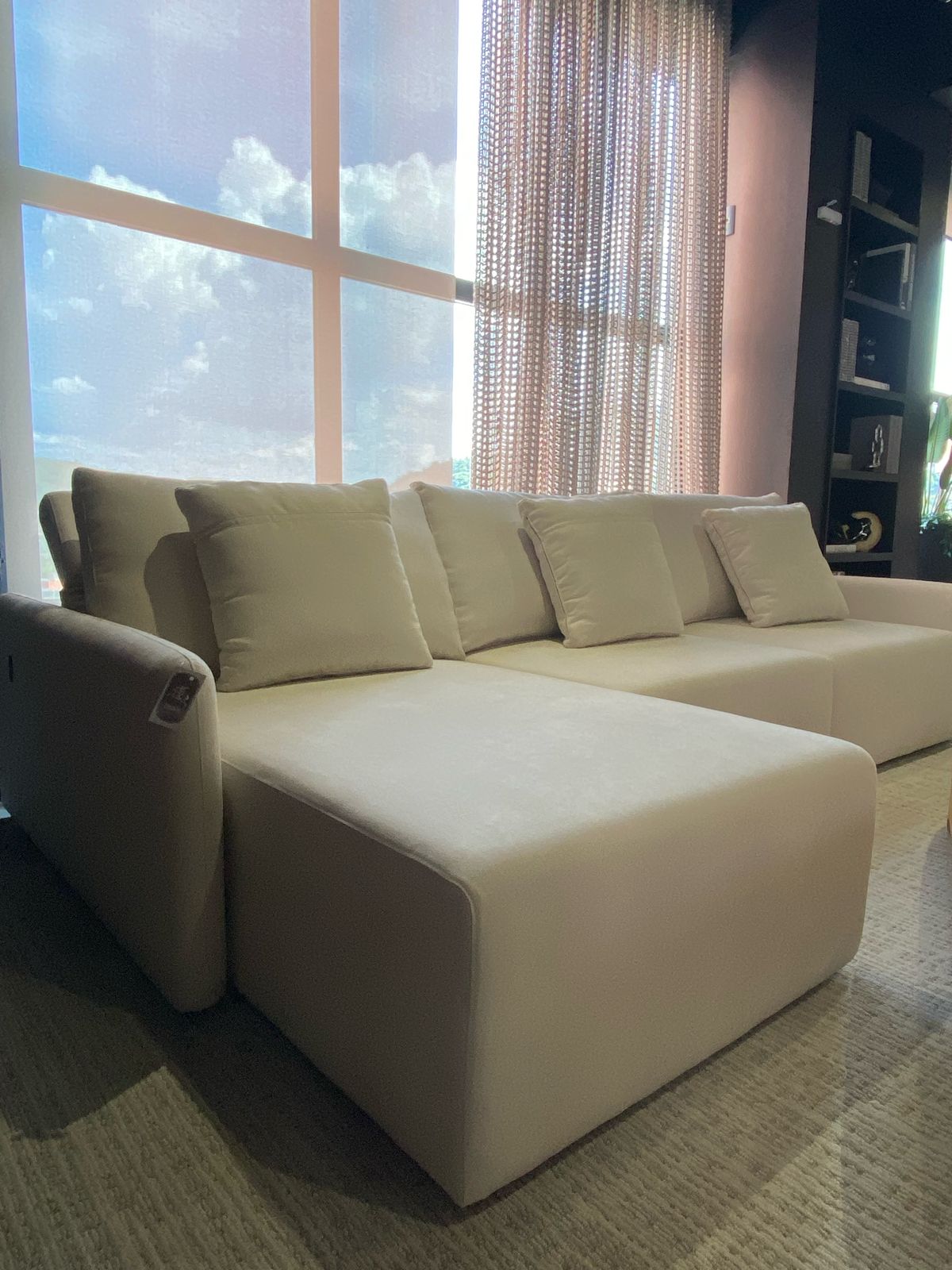 Com design sofisticado e funcionalidade inteligente, o estofado Capri da Enele é a escolha perfeita para quem busca conforto sem abrir mão de estilo. Sua estrutura retrátil permite ajustar o assento para um relaxamento completo, enquanto o acabamento impecável e as linhas elegantes complementam o ambiente com classe. Feito com materiais de alta qualidade, o Capri alia durabilidade e conforto em uma peça que transforma qualquer espaço em um verdadeiro refúgio de aconchego e modernidade.A 90 x ASS 40 x L 290 x C 180 x P 60 - 1101 UN