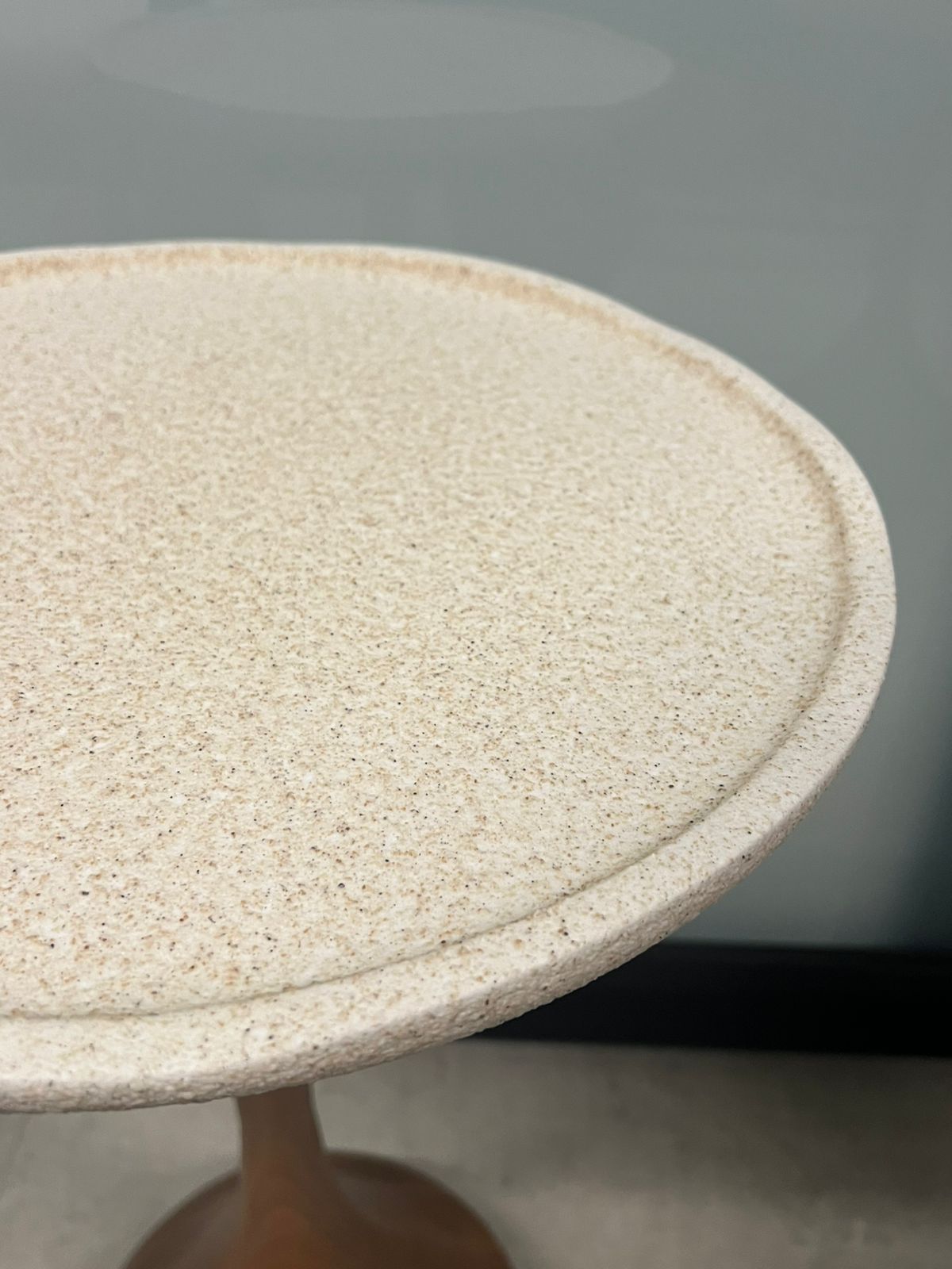 A Mesa Lateral Nolina em Damasco combina design sofisticado e funcionalidade, com tampo redondo estilo bandeja e bordas orgânicas que transmitem leveza e segurança. Seu acabamento natural valoriza qualquer ambiente, tornando-se a escolha perfeita para complementar espaços com charme e elegância.D 38 x A 561 UN